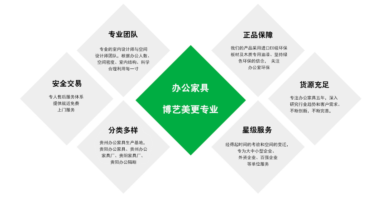 貴州博藝美辦公家具有限公司是一家集辦公家具定制、方案設(shè)計、制造銷售為主的貴陽辦公家具廠家,公司致力于為客戶提供品牌配套辦公家具,幫助客戶創(chuàng)造舒適的辦公環(huán)境,適中的價位方案。產(chǎn)品范圍包括:老板桌、經(jīng)理桌、職員桌、會議桌、文件柜、玻璃隔斷、辦公沙發(fā)、酒店家具、學(xué)校課桌家具、培訓(xùn)桌、辦公椅、洽談桌等定制類家具。凝結(jié)藝術(shù)之美,張揚(yáng)人性化辦公環(huán)境,詮釋優(yōu)質(zhì)辦公家具之精髓,努力為客戶營造舒適典雅的現(xiàn)代辦公環(huán)境。致力于打造貴州辦公家具廠家第一品牌,為提升整體辦公環(huán)境而努力!